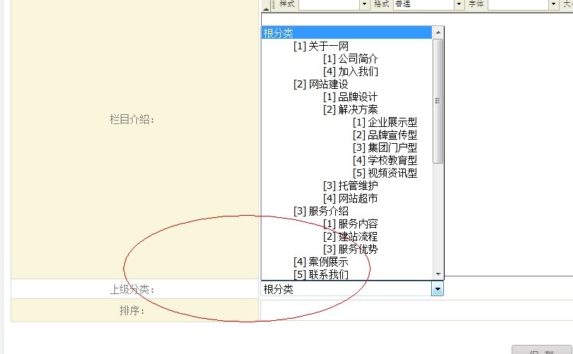 5、上級分類(重點):如下圖,選擇此欄目的父級欄目。默認(rèn)是跟分類。